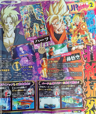 Para Super Dragon Ball Heroes, a revista promove Big Bang Mission 7, revelando novos cartões. O Big Bang Mission 7 chega nesta quinta-feira (hoje), 18 de março, nos fliperamas japoneses, e lançará um novo arco intitulado “Grande Batalha Em Um Novo Espaço-Tempo”. Como vimos no primeiro trailer da missão algumas semanas atrás, Hearts após sua derrota para Gogeta estará de volta do submundo, e dará uma mão a Goku contra Xeno Golden Freeza e seu irmão Xeno Golden Metal Cooler.